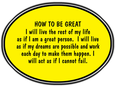 I will live as if I am a great person. I will practice being great each day of my life.